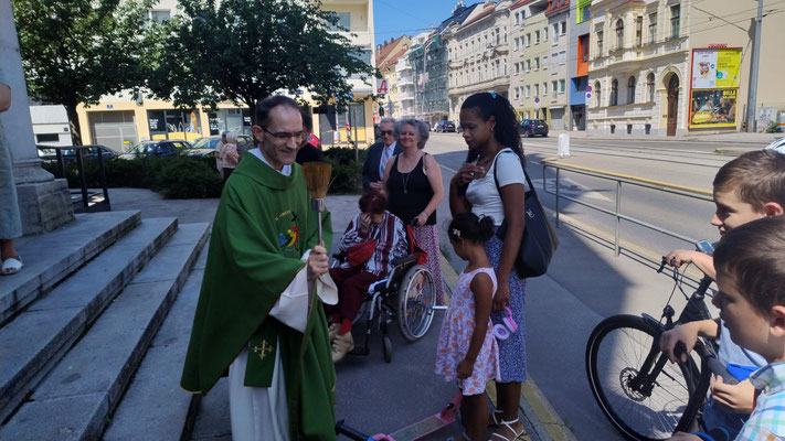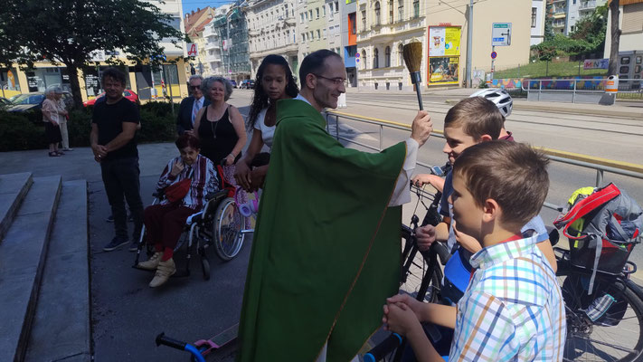Wie jedes Jahr beteiligte sich auch unsere Pfarre an der Spendenaktion und es gab auch in unseren beiden Teilgemeinden wieder die Möglichkeit der Fahrzeugsegnung nach der Sonntagsmesse. Alles, was Räder hat, durfte dabei mitgebracht werden, neben Autos und Motorrädern natürlich auch andere Fortbewegungsmittel wie Fahrräder, Roller oder Kinderwägen.
