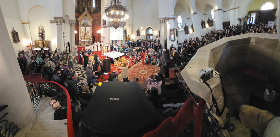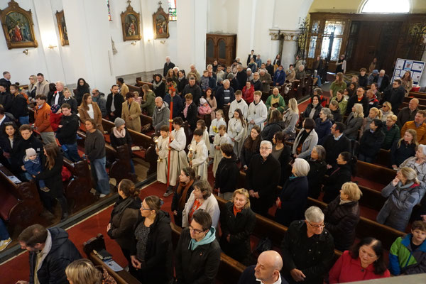 Es ist eine Freude, unsere Kirche bis auf den letzten Platz gefüllt zu sehen. Für alle, die keinen Platz mehr fanden oder aus anderen Gründen nicht vor Ort sein können, gibt es bei dieser Messe auch wieder eine Live-Übertragung, damit die tolle Stimmung auch so weitergegeben werden kann.